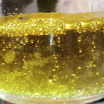 2: Wanneer het butaan eenmaal is vervlogen, hou je een niet-gepurged live resin concentraat over. Purgen is het schoonmaken van het concentraat van het oplosmiddel, door middel van verhitting en/of een vacuum, wordt ook het laatste butaan uit het concentraat gehaald. In het geval van diamond dabs, doe je in eerste instantie alleen een verhitting zonder vacuum op ongeveer 32 graden, tot maximaal 37 graden. Door de verhitting zal het meeste van het butaan uit het concentraat dampen.
