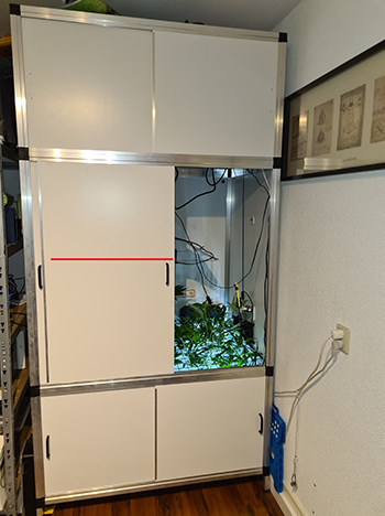 Je vraagt je misschien af waarom ik ze op die tegels heb staan? De led verlichting die ik gebruik zit vast aan een Curver box deksel en ik had niet de tijd om een ophangbeugel te maken voor de verlichting. De Curver box was net één centimeter te groot voor de CNNBS G-Kit met verhogingsset. Ik heb het voor nu even zo opgelost.