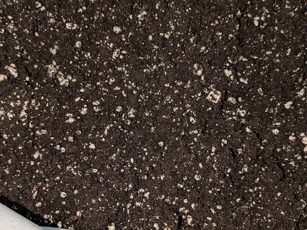 Het is een vrij homogene aarde met een fijnkorrelige structuur, voorzien van perliet. Ik heb de 18-literpot één keer goed bewaterd en merkte meteen wat ik al vermoedde: deze aarde heeft een hoge waterretentie. Iets om rekening mee te houden dus – in het begin is voorzichtig water geven zeker aan te raden.