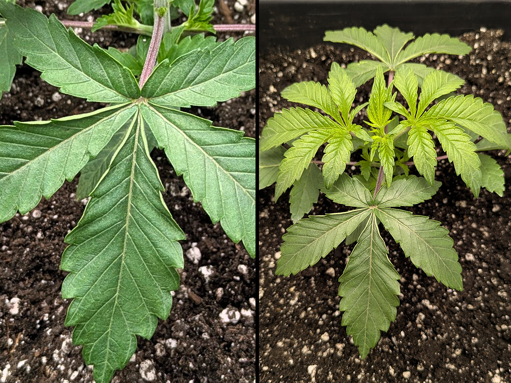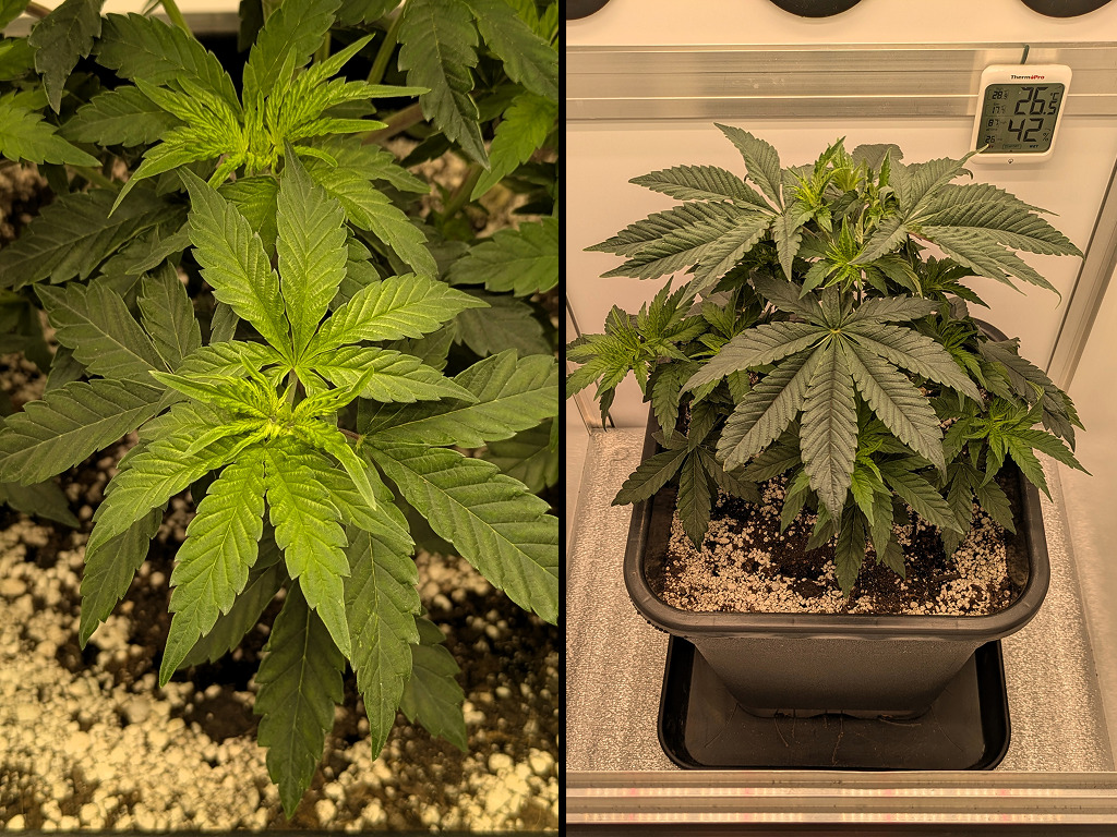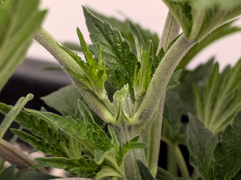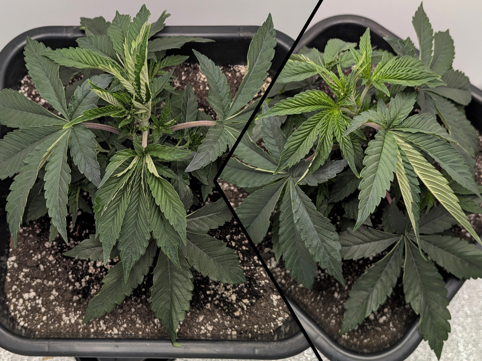 Niet extreem zichtbaar, maar net genoeg om de plant uit balans te brengen en stress te veroorzaken. Zeker weten doe ik het niet, dus dit blijft een hypothese. Maar alles wijst in die richting, en voor nu is dit mijn beste verklaring: een te hoge DLI in de vroege groeifase zorgde voor een tijdelijke uit balans zijnde plant.