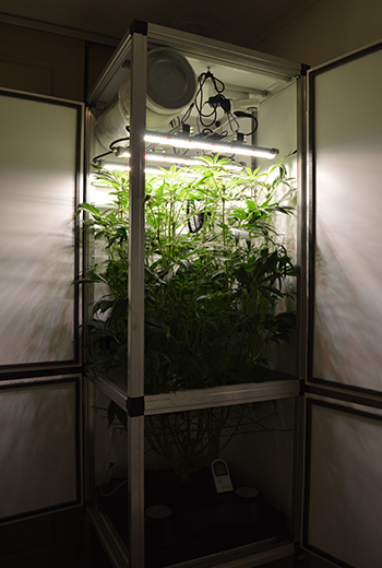 Als madame Do Si Dos volgende week in hetzelfde tempo doorgroeit als de afgelopen week, dan heb ik een probleem. De plant aait de led balken nu al met sommige bladeren maar tot nog toe kon ik de lamp steeds nog een stukje optakelen. De ventilator is inmiddels wel al diep in het bladerdek gezakt, en wordt links en rechts voorbij gegroeid. Afijn, kijk zelf maar want plaatjes zeggen soms meer dan 1000 woorden.