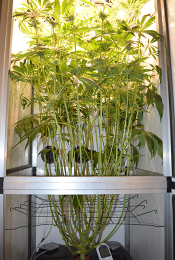 Is het je trouwens opgevallen dat ik deze week weer flink gesnoeid heb? De enorme jungle aan de onderste helft van de plant is weg. Vorige week liet ik die zien, en durfde ik het nog niet aan om die weg te halen (dieven). Maar toen mevrouw Do Si Dos eindelijk uitgegroeid was wel. Er kwam weer bijna een hele wietplant vanaf.