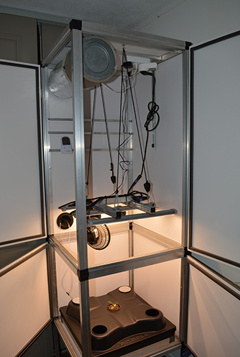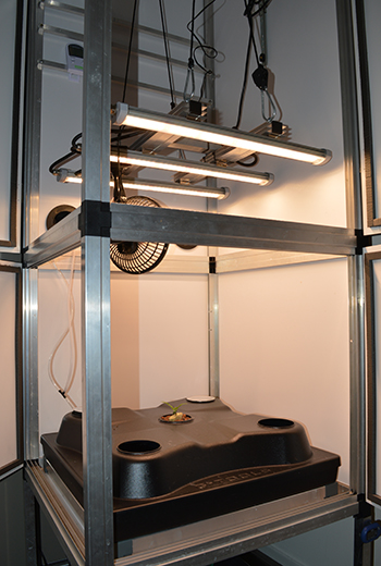 Het probleem waardoor de plantjes het weekend niet hebben overleefd, is natuurlijk omdat ze nog geen wortels in het water hadden. Alleen de zaailing die in het midden van het 3-in-1 kweeksysteem stond overleefde omdat ze door opspattend water werd natgehouden. Het systeem wordt geleverd met luchtpomp en twee lange bruisstenen om alle netpotjes van luchtbellen te voorzien. Alleen heb ik maar één bruissteen in gebruik, omdat ik toch maar één wietplant in het kweeksysteem laat groeien.
