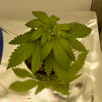 Kortom, ik had geen idee. En daarom heb ik de hulp ingeroepen van mijn kweekvrienden, om oorzaken uit te kunnen sluiten. Om te beginnen vroeg ik het aan Jeroen. Hij heeft immers een hele mooie ronde gekweekt met dezelfde 150 Watt G-Bars LED kweeklamp die ik gebruik. Jeroen herkende de vergeling niet, dus dat probleem kon ik alvast afstrepen. Voor de zekerheid heb ik de lamp wel wat hoger gehangen dan wordt aangeraden. Mijn internodes zijn nog steeds mooi kort, dus de LED zorgt ook op een hoogte van een halve meter voor genoeg licht.