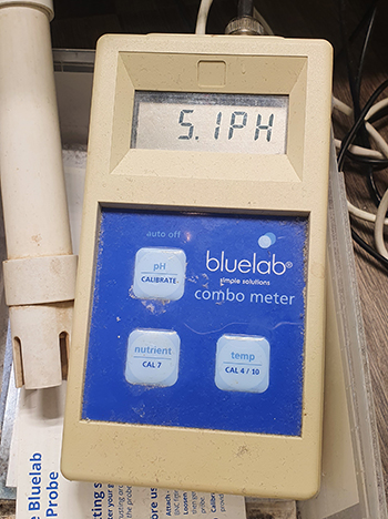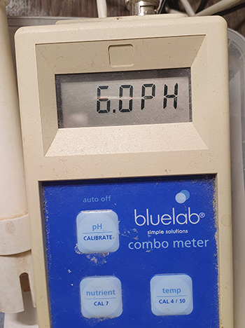 Maar dan de hamvraag: blijft de pH-waarde nu wel stabiel? Het lijkt erop van wel, en dat kan ook bijna niet anders want het hele hele systeem is vervangen. Ik durf er bijna geen pH-min meer bij te doen maar dat moet natuurlijk wel om het voedingswater naar een pH van 5,8 te brengen.