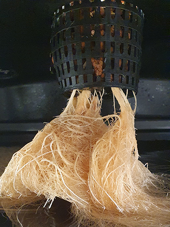 Daarvoor moest de plant dus weer tijdelijk uit het systeem. Iets wat nog niet zo makkelijk was, aangezien de wortels het netpotje ondertussen alweer uit elkaar gedrukt hadden kreeg ik het er bijna niet meer uit.