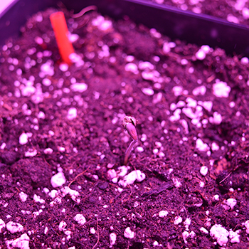 Nadat ik de uitgekomen zaden in de grond had geplant, heb ik de aarde nog een klein beetje nat gemaakt en de led kweeklamp op 24/24 aangezet. Daarna de potten afgedekt met wat plastic om te voorkomen dat de toplaag met de zaden zou uitdrogen. Vanmorgen, dus vijf dagen na het ontkiemen waren alle CNNBS Indica’s boven de grond. Ik heb het plastic er meteen afgehaald want zaailingen hebben (in tegenstelling tot stekken) geen hoge luchtvochtigheid nodig.