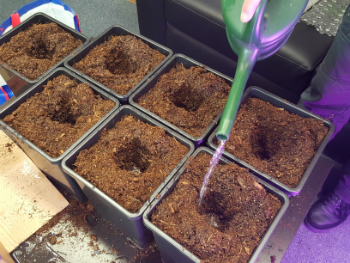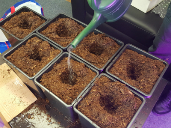 Verpotten is een eitje met de pluggen. Gaatje maken, plantje erin en gezellig toedekken