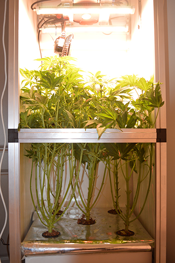 Een ander voordeel waar ik volgende keer zeker meer rekening mee ga houden, is de enorme groei die wietplanten doormaken in hydrosystemen. Als ik vooraf had geweten hoe hard de Mohammed dames zouden groeien, dan had ik ze zeker twee weken eerder op 12/12 gezet. En met snelle groei bedoel ik dus niet dat ze strekken, maar gewoon de algehele aangroei aan plantmassa. Ik heb de planten inmiddels drie keer gediefd en telkens bijna een hele wietplant aan bladeren en takken weg mogen halen. Als ik er stekken van gemaakt had, had ik een professionele stekkenboer kunnen worden.