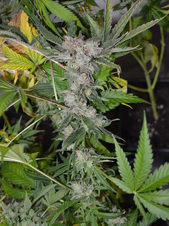 De groeifase had achteraf trouwens wel iets korter gekund, want zoals je wellicht nog weet groeiden ze halverwege de bloeifase een beetje tegen de lamp. Goed, uiteindelijk heeft dat zich wel weer goed opgelost want de oogst is prachtig! Alle acht de lemon Zkittles hadden minimaal twee, maar vaker drie en soms zelfs vier dikke plakkerige en vooral keiharde toppen.