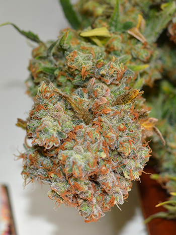 Om je een idee te geven van de hoeveelheid plakkerige trichomen, heb ik op een paar foto’s ingezoomd. Je ziet dat de buds glinsteren als discoballen, en ik moet zeggen dat ik ook erg trots ben op het resultaat. Geur kan mijn fototoestel helaas niet vastleggen en dat is misschien maar goed ook voor alle nietsvermoedende CNNBS lezers 😉