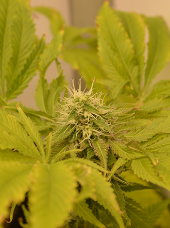 Ja, ik stond zelf ook even raar te kijken toen ik de laatste plant zag. Ze stond rechts achterin mijn CNNBS G-Kit en was pas net aan haar bloeifase begonnen. Deze dame was aanzienlijk kleiner dan de rest en had een paar toppen in ontwikkeling. Deze zagen eruit alsof ze pas een week of drie in bloei stonden, met enkel witte bloeiharen en nog geen trichomen. Ik heb deze plant ook gewoon geoogst; haar nog eens 6 weken laten bloeien leek me ook een beetje zonde van de energie.