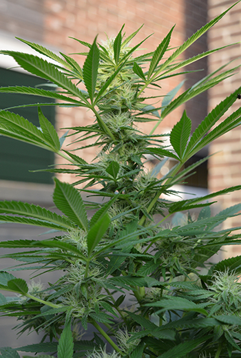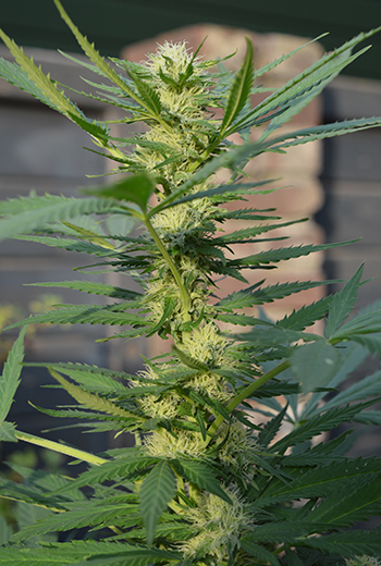 Vorige week moest ik twee van de vier planten nog binnen zetten om ze tegen de regen te beschermen, maar nu staan ze weer lekker buiten. De weergoden hebben namelijk nog een paar mooie dagen gebracht, en dus gaat de bloei mooi verder. De bloeiharen zijn nog wel wit maar de toppen beginnen wel langzaam dikker te worden. Ook ruik ik de dames buiten steeds sterker, en zijn er ook al de nodige trichomen te zien.