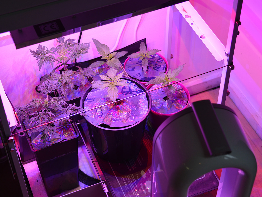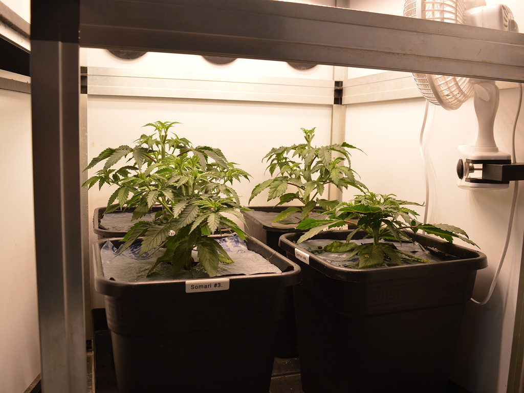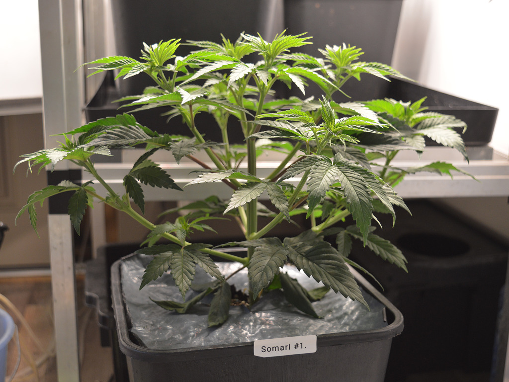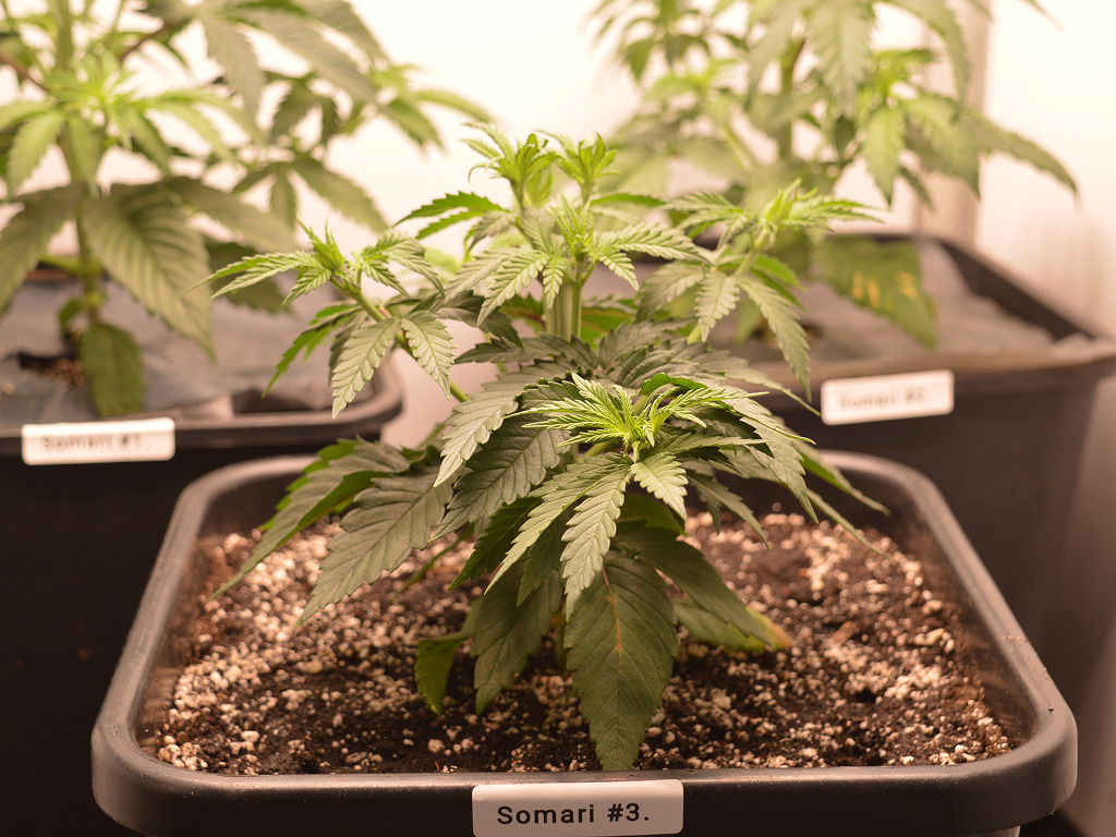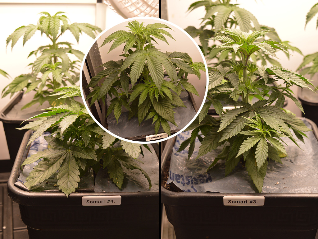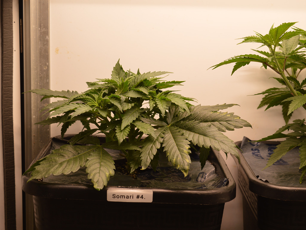 Bij het verpotten heb ik de Somari’s wat dieper in de aarde gezet, want ze waren een klein beetje gestrekt onder de oude Hans Panel van m’n IKEA voorgroei kast. Ik heb ze in Soma’s Super Soil gezet, dus ze groeien uitstekend en ik hoef alleen nog water te geven.