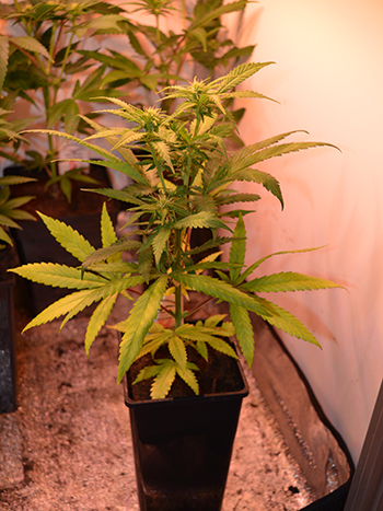 Dat gaat lekker snel hè! De CNNBS Indica’s blijven mooi compact en de topontwikkeling verloopt ontzettend snel in deze eerste dagen van de bloeifase. Soms gaat het zelfs iets té snel; omdat de planten nu veel dorstiger zijn moet ik ze eigenlijk dagelijks water geven. Vooral de planten in de kleinere potjes (zoals je wellicht nog weet hebben 7 van de 16 planten slechts een 2-literpot) moeten tijdig bewaterd worden.