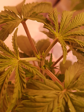 Zoals je op de foto’s ziet mogen de wietplanten zich nog wel wat meer in de breedte ontwikkelen. Om dit te stimuleren ben ik maar vast begonnen met de vier-toppen-per-plant training. Dit houdt in dat ik de wietplanten top en dief om uiteindelijk precies vier toppen per wietplant over te houden. Het toppen is de eerste stap van deze training, die ik maar vast genomen heb.