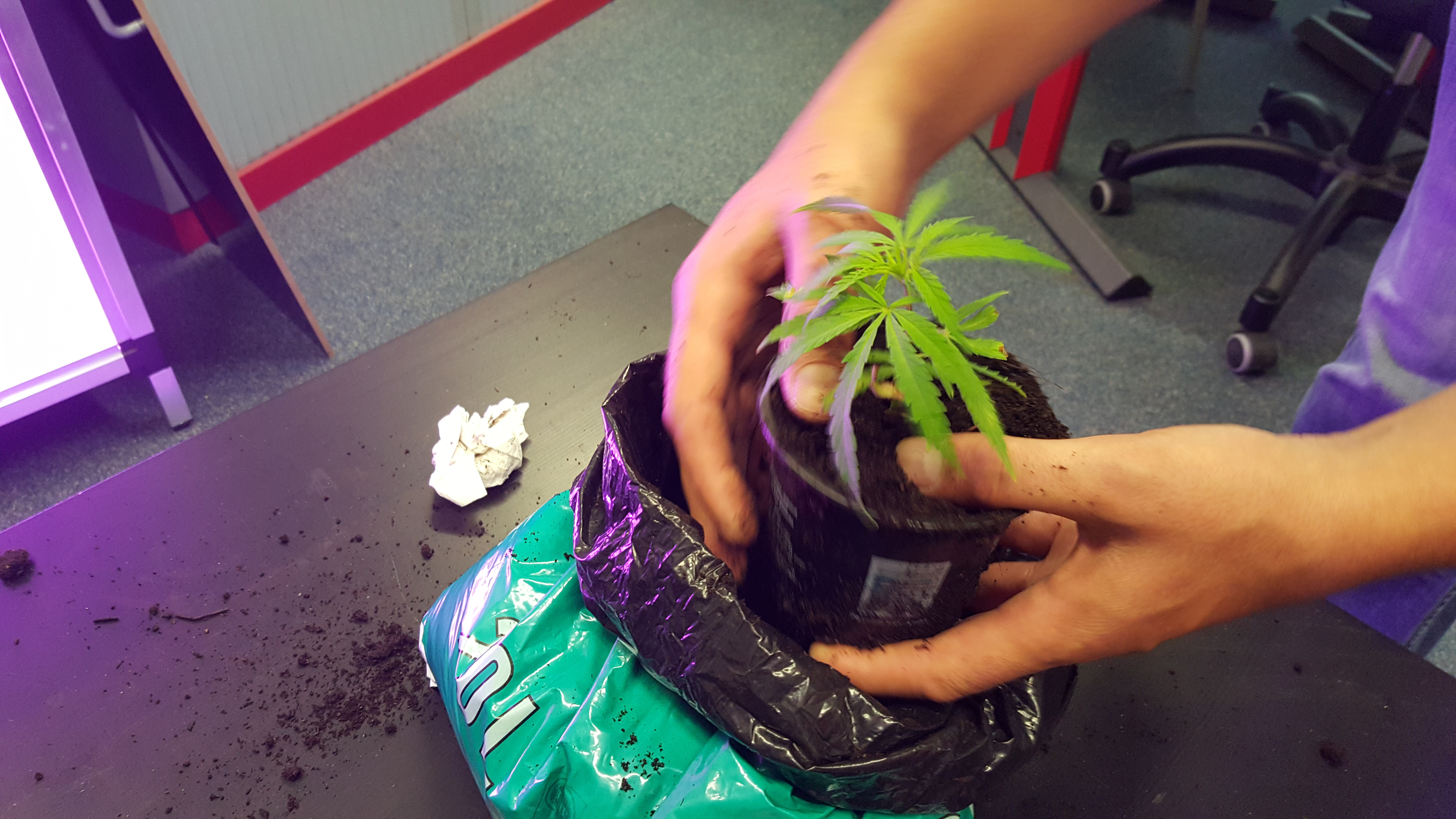 Zoals je kunt zien zit er best wat verschil tussen de stekjes. De twee beste exemplaren zijn al lekker aan het groeien, terwijl ik over de kleinste nog niet eens helemaal zeker ben of ze het zal overleven… In ieder geval staan ze nu allemaal droog en wel in de RollingStoned G-Kit en natuurlijk ben ik niet vergeten hoe krachtig het licht van de LED kweeklamp is. Ik heb de lamp dus op iets meer dan 30 centimeter hoogte gehangen en alleen het groeilicht staat aan. Zo kunnen de plantjes rustig wennen aan het LED kweeklicht.