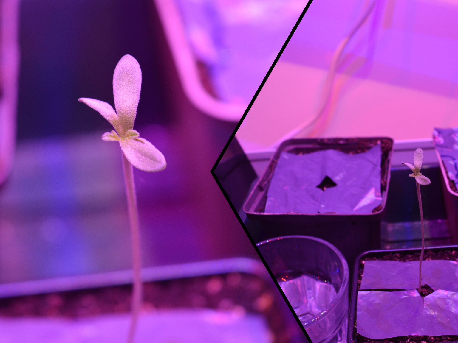Oh, gelukkig daar zijn ze dan! Op de achtergrond ligt Frosty’s Purple Freak #2 ook al te ontkiemen.