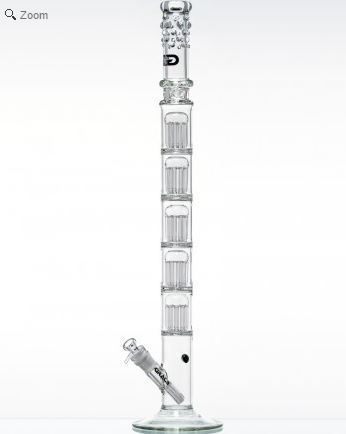 Ook GGBongs heeft topmodellen, zoals deze extra lange Skyscraper van wel 86 centimeter. Een bijzonder kunstwerkje. Gemaakt van extra dik glas van 7 millimeter en voorzien van niet één, maar wel vijf percolators en ijs inkepingen.