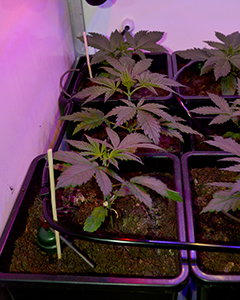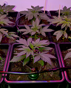 Zoals je misschien nog weet stonden de bladeren van de Candy Dawg Kush zaailingen vorige week naar beneden gericht. Dat is negen van de tien keer te wijten aan te natte aarde. Gelukkig trokken ze na het verpotten weer helemaal bij en staan de bladeren nu weer fier omhoog. Ook de Dinamed CBD planten staan er goed bij. Alle negen genieten ze van hun nieuw verkregen ruimte, wat ervoor gezorgd heeft dat ze deze week aanzienlijk gegroeid zijn.