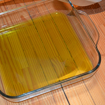 Ik maak één alcohol oplossing waarna ik van de helft daarvan wietolie maak en van de andere helft mijn concentraat. Het deel van de oplossing voor concentraat laat ik in een ovenschaal zonder verhitting indampen en het deel waarvan ik wietolie maak, laat ik au bain marie indampen. Door het op deze manier te verhitten wordt het meteen ook gedecarboxyleerd zodat je ook een effect merkt wanneer je de wietolie onder de tong druppelt. Bij het decarboxyleren wordt het niet-psychoactieve THC-A namelijk omgezet in het wel psychoactieve THC. Voor het concentraat maakt dat dan weer niet uit, aangezien dat bij het dabben of verdampen later tóch nog wordt verhit.