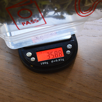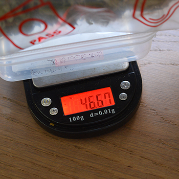 Ja, dat was de hamvraag natuurlijk: hoeveel heeft de Seriotica opgeleverd. Nou, niet alleen qua kwaliteit maar ook qua kwantiteit was het een zeer goede oogst. Dat was natuurlijk ook wel te verwachten, want trichomen wegen relatief gezien het allerzwaarste van wiet. Het plantmateriaal droogt immers uit, terwijl trichomen een olie-achtige substantie blijven.