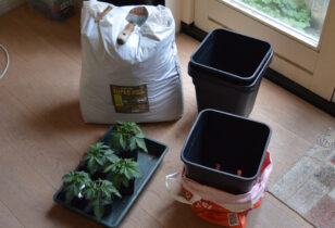 Ik gebruik deze keer kant en klare aarde van Soma’s Sacred Soil. Die kun je niet online bestellen maar het is een light mix met alle producten van de biologische Soma-voedingslijn er al in. Alleen de compostthee voeg ik er nog handmatig aan toe. De nuttige schimmels en voeding zit er allemaal al in, dus ik hoef verder alleen water en compostthee te geven.