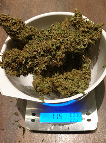 Voor de kerstdagen heb je kunnen zien hoe Willie Wietman de hoofdtoppen van zijn Liberty Haze planten oogstte. Inmiddels zijn ook de rest van de toppen netjes geknipt en gedroogd, zodat Willie vandaag het eindgewicht bekend kan maken. In de CNNBS G-Kit XL staan alweer nieuwe wietplanten op 12/12…