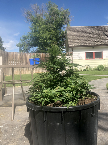 Dan schakelen we nu over naar buiten. Om het gemis van de White Widow Auto planten goed te maken had ik daar immers twee nieuwe Blueberry wietplanten neergezet. Twee weken geleden waren het nog zaailingen maar ondertussen heb ik ze in 20-literpotten verpot. Als je goed naar ze kijkt, zie je dat de bladeren naar beneden hangen en een beetje opkrullen. Dit betekend dat ze wat te veel water hebben gekregen.