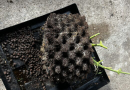 Het is dus wat warmer is in de kweekruimte, en de planten zijn aan hun strekkende periode begonnen sinds de lampen op 12/12 staan. Hierdoor moet ik het waterreservoir van het kweeksysteem nu wekelijks bijvullen. Als ik dat doe gaat ook de pH-waarde omhoog en de EC-waarde omlaag, welke ik dan weer op peil breng met de voeding van General Hydroponics en pH-min. Zo probeer ik de pH-waarde tussen de 5,6 en de 6,0, en de EC-waarde op de 1,3 te houden.