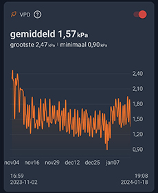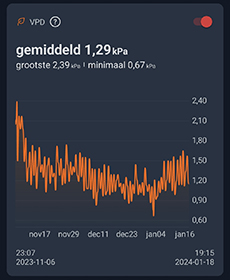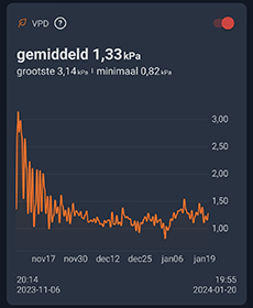 Wat me is opgevallen tijdens het experimenteren met de VPD-waarde, is dat je deze niet per dag moet bekijken maar eerder per week. De VPD-waardes luisteren nogal nauw en zetten je al snel in de paniekstand. Zeker voor een startende kweker is het iets waar je je beter nog even geen zorgen over moet maken. Het is dan wel weer leuk om aan het eind van een kweek te zien of je binnen de marges bent gebleven.