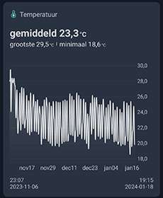 En dan te bedenken dat de G-Bars er al aardig wat branduren op heeft zitten. Dit wekte natuurlijk wel vragen bij mij op? Klopt de weegschaal wel? Maar na twee keer wegen leek het toch echt zo. Hierdoor werd ik wel erg nieuwsgierig naar de gegevens van de sensor in deze kweekkast. Is er misschien iets dat zo’n mooie oogst kan verklaren?