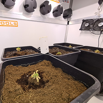 Na de reddingsoperatie heb ik de kweeklamp – een 315 Watt CMH binnenzon – op 60 procent van zijn vermogen gezet, om de dames niet te overbelasten. Ook heb ik de lamp wat hoger gehangen, op zo’n 40 centimeter boven de zaailingen. Zo kunnen ze hopelijk rustig herstellen de komende dagen. De bewatering van de dames bekijk ik van dag tot dag.