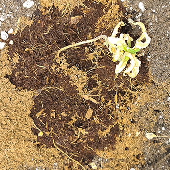 Ik heb de kleine verschrompelde plantjes natuurlijk meteen uit de kast gehaald, en eens goed bekeken. Er zaten nog zat wortels aan de kleine stammetjes, en nog wat groene bladeren en dan is er hoop. Ik had inmiddels alle spullen klaar gezet om de dames te verpotten. Dit had ik immers al gedaan vóór ik in de kast keek. Ik besloot om ze ondanks hun belabberde staat toch maar te verpotten.