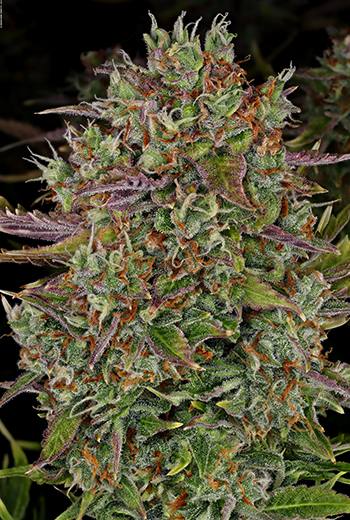De productie van de trichomen ging ook maar door, en uiteindelijk kregen de toppen mooie ijzige witte looks die zeker niet onder doet voor de originele AK-47. Wat ik ook heel mooi vond was de paarse kleur van de bovenste suikerblaadjes. En natuurlijk de hoofdtop, want die is uiteindelijk serieus groot geworden! Een spectaculaire knuppel met het formaat en gewicht van een baksteen. Het was een adembenemende whopper van een hoofdtop!