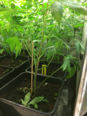 Ik ben van de week onder het bladerdek in de weer geweest en heb daar alle kleine takjes weggesnoeid. Dit soort kleine takjes krijgen nooit echte mooie toppen, maar verbruiken wel energie en kosten je een hoop knipwerk aan het eind. Vandaar dat je ze beter weg kunt halen om de hoofdtoppen meer energie te geven, op deze manier snoeien heet ook wel dieven en in het Engels noemt men het lollypopping omdat de planten er kale stammen van krijgen zoals het stokje van een lolly.