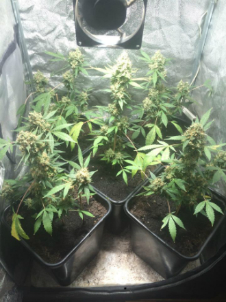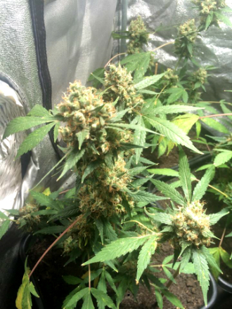 Bij onze vriend Elmo valt nog eens wat te oogsten! Oké, de BlueShine planten moesten door de Spint vervroegd geknipt worden, maar nu die droog en wel gecured worden hangt de tent alweer vol met autoflowers van buiten. En ondertussen zijn ook de Amnesia’s bijna oogstrijp, die Elmo zit er warmpjes bij deze winter…