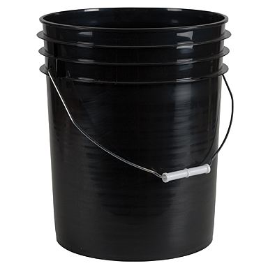 4 grote rechte emmers met een inhoud van 25 tot 30 liter.