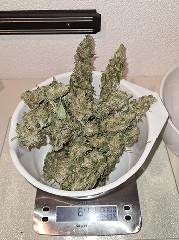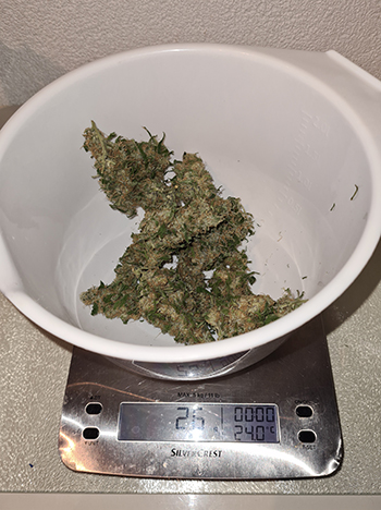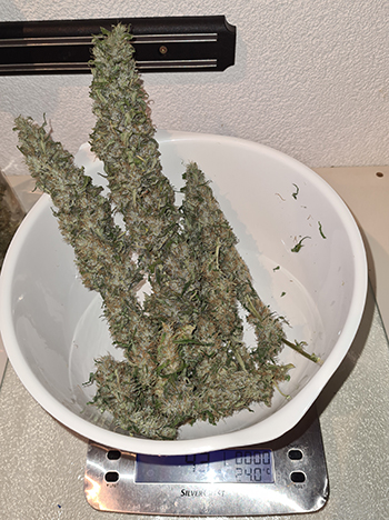Op de onderste laag van het droognet had ik de wiet te drogen gelegd die van de toppen met toprot kwamen. Deze heb ik extra goed gecontroleerd en zien er goed uit. Ze hebben geen sporen van toprot en ruiken heerlijk. Het gewicht ervan was 24 gram. Op de bodem van de G-Kit had ik ook nog wat toppen, het gewicht hiervan was 30 gram. Het totaal komt daarmee uit op 227 gram lekkere Mohammed.