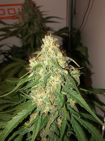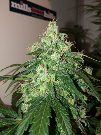 Inmiddels heb ik ook al weer een aantal keer de Mills PK- booster meegegeven met het water, om de toppen het laatste duwtje in de rug te geven. Heel erg lang kan ik het niet gebruiken want er zal ook een kleine twee weken gespoeld moeten worden, wat de smaak ten goede komt natuurlijk. In de laatste weken gooi ik ook nog een schepje Mills Vitabrix bovenop de aarde. Dat zijn organische siliciumkorrels die voor de plant vrij opneembaar worden zodra je ze water geeft. Het zorgt voor een mooie diepgroene glans en gezonde wietplanten.