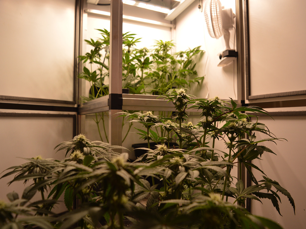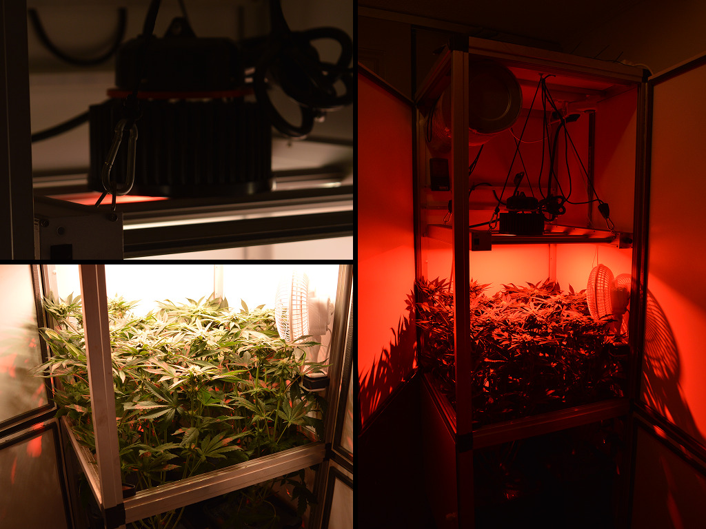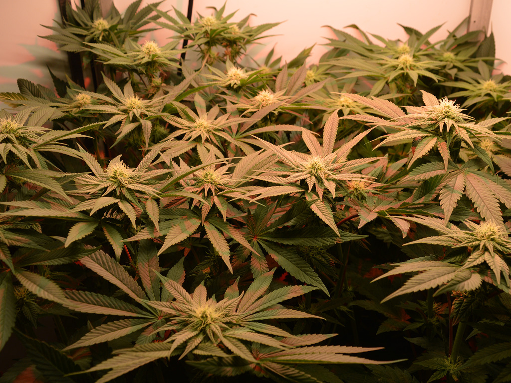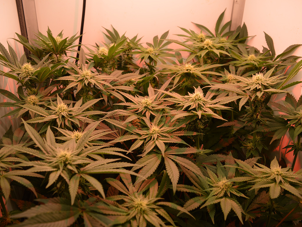 Mijn planten kunnen elke extra foton natuurlijk goed gebruiken in de bloei, dus heb ik de rode LED weer aangezet. Ik moet alleen wel blijven opletten want te veel rood licht kan de toppen ook minder compact maken. Voorlopig staat de lamp aan het begin en aan het einde van de lichte periode een half uurtje aan, en halverwege de ‘dag’.