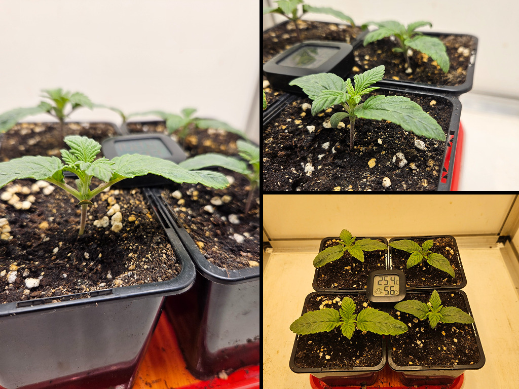 En nu ik toch even aan het terugrekenen ben, kan ik je ook meteen vertellen dat de planten in totaal 8 weken oud zijn. Dat is gerekend vanaf woensdag 26 november, toen ik de Frosty Tooth zaadjes in een koffiefilter deed om te laten ontkiemen. En weet je nog dat ik toen ook wat zaadjes had weggegeven? Wel, degene die ze won stuurde me vanmorgen deze foto’s 👇 Leuk hè! Gefeliciteerd met je vier gezonde dochters, A.