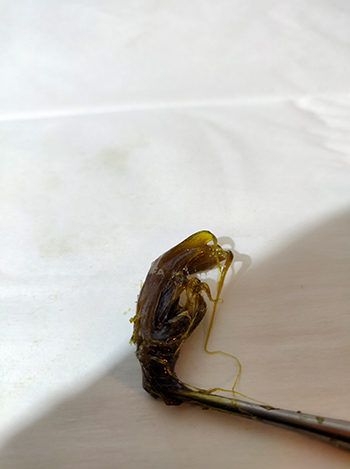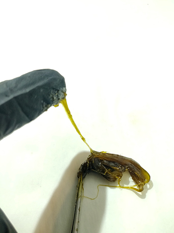 De eerste persingen hebben we mét filterzak uitgevoerd. Deze leverden uiteraard het meeste rosin op, maar het meeste rendement valt met deze pers waarschijnlijk te halen door je wiet zónder het filterzakje te gebruiken. Dit is omdat je op een losse top meer druk kunt uitoefenen, en is eigenlijk ideaal voor eigen gebruik. Je kunt een topje persen en daarna metéén van het resultaat genieten!