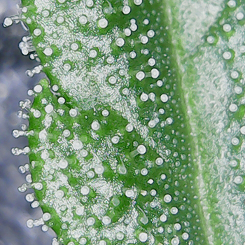 Dat de luchtvochtigheid met 59,42 procent, gelijk is gebleven is op zich niet zo gek. Ik ben ook niet meer water gaan geven en zit nog steeds op 500 milliliter water per dag (om de dag een liter per plant). Dit moet ik nu wel goed in de gaten houden want de planten gaan nu ook iets minder drinken. De grootste wietplant is nu 108 centimeter. Zoals beloofd ook nog een paar foto’s van de trichomen die al hier en daar aan het vormen zijn.