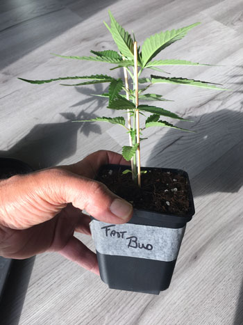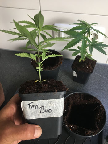 Bij de FastBud dame heb ik waarschijnlijk net te veel van het groeipuntje weggeknipt en hier zijn dus maar twee nieuwe hoofdtakken uitgelopen. Misschien moet ik het op een later tijdstip nog maar eens proberen, want het is nu eerst tijd voor de definitieve potten en het buitenleven.