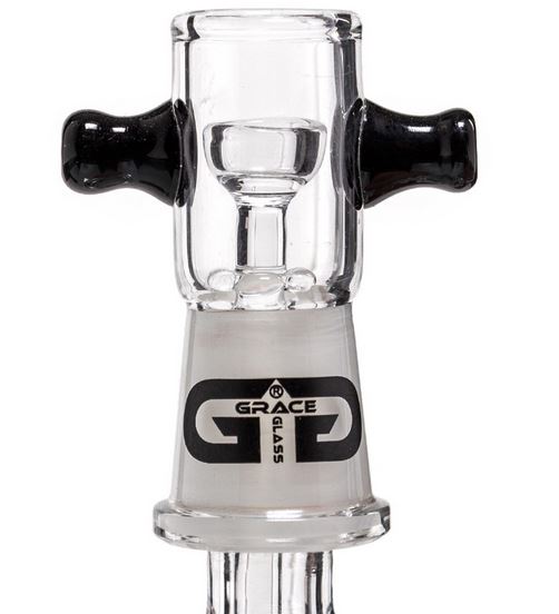 Aan de voorkant van het waterreservoir schittert het Grace Glass logo en aan de zijkant functioneert het in vierkante stijl uitgevoerde mondstuk tevens als handvat voor een goede houvast tijdens honderden heerlijke dabsessies! Geïnteresseerd in dit unieke stukje connaisseurs-parafernalia? Wees er snel bij, hij kost 75 euro maar dan heb je dus wel een vet unieke pijp! Uiteraard verkrijgbaar op GGBongs.com, waar anders?