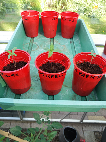 Rond de tijd dat ik mijn vorige verslag instuurde, kreeg ik van een bevriende groeier ook een pakje OG Reek’n zaden van Devil’s Harvest. Het is geen gemakkelijk plantje voor in de buitentuin maar als ik ze kan verduisteren zullen ze heel mooie bloemen opleveren met een overweldigende geur van terpenen. Het reek’t en rookt geweldig!