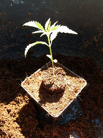 Op 9 mei heb ik de OG Reek’n zaden in een koffiefilter gestopt en op 12 mei zijn ze de kokos ingegaan. De kokos, waar de ontkiemde zaadjes in worden geplant, water ik in met de helft van de voorgeschreven dosis Canna Coco voeding, dus 20 milliliter in plaats van 40 milliliter A&B op 10 liter water. Als de eerste kartelblaadjes ontstaan verhoog ik de dosering. Op 30 mei zijn ze verpot naar 1,25-literpotten. Dit heb ik gedaan met de, verhoogd-bed-methode. Samen met de langere groeiperiode van deze fotoperiode-gevoelige soort, zorgt dit voor ‘luchtwortels’ boven het medium. Hiermee kunnen de planten dan extra zuurstof opnemen. Deze techniek heb ik van Soma, iemand die mij enorm inspireert.