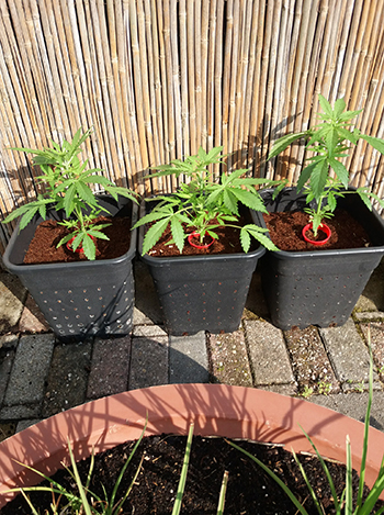 Op 5 mei waren de autoflowers Hindu Kush, Superskunk en Northern Lights van Sensi Seeds succesvol ontkiemd en zijn ze de kokos ingegaan. Op 17 mei heb ik ze van hun kweekpotje naar een 18-literpot verplaatst. Op 6 juni staan ze er lekker bij en groeien ze goed op de voeding van Canna.