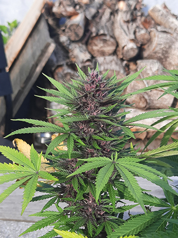 De meeste growers die dit opmerken denken dan, ‘klote!’. Ik niet, ik zie er wel wat in, en probeer dan altijd wat stuifmeel op te vangen. Bij deze echter niet want de Purpurea Stella’s blijken allen dames te zijn. De phenotypes liggen qua uiterlijk in groei en bloei gelijk. Alleen pheno#2 reageert sneller op het korten van de dagen, en heeft een beduidende voorsprong bij het inzetten van de bloei vergeleken met de andere Purpurea Stella planten.